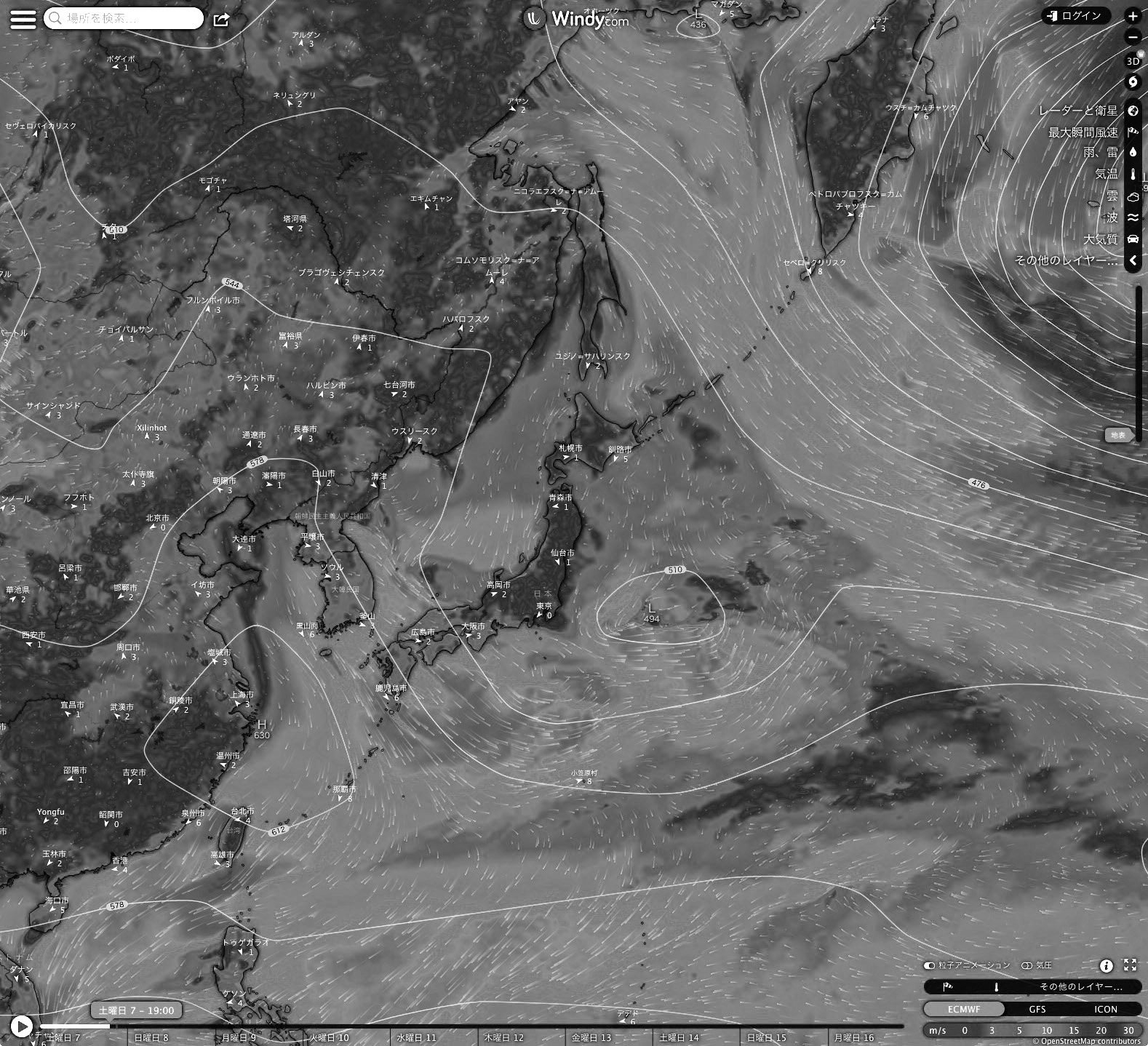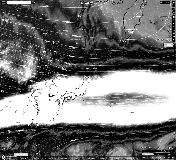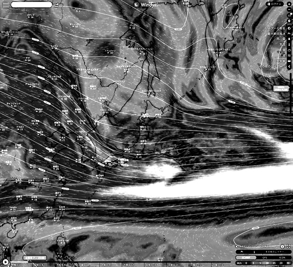 Windy.com の 2023-01-07 19:00 天気図を引用。