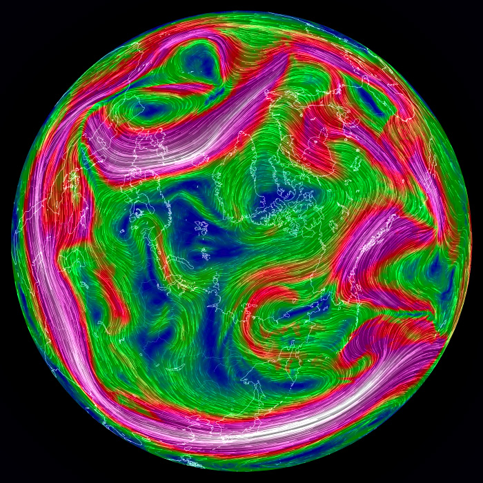 右列の天気図は,earth.nullschool.net から。