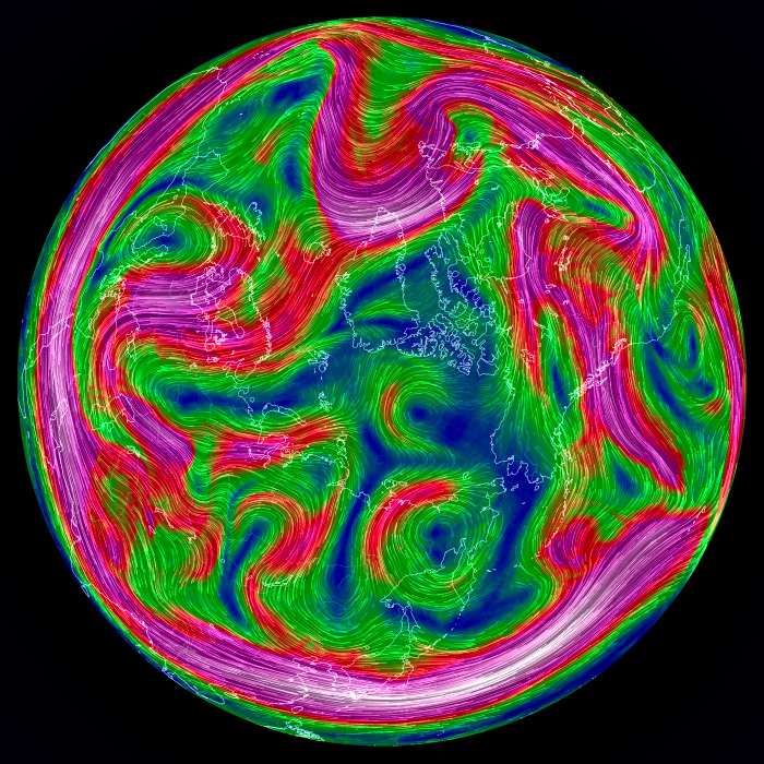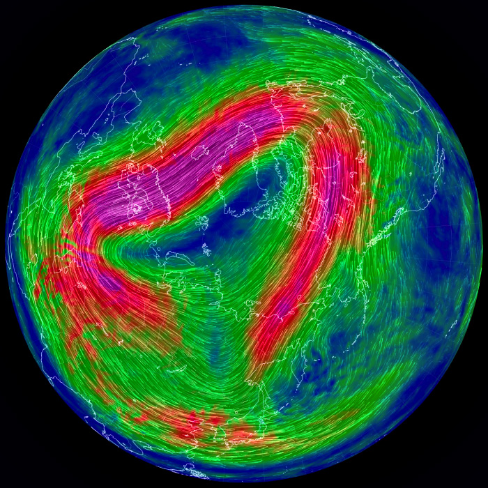 右列の天気図は,earth.nullschool.net から。