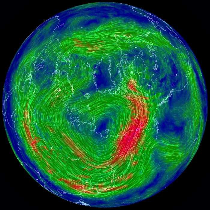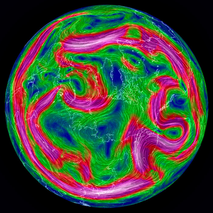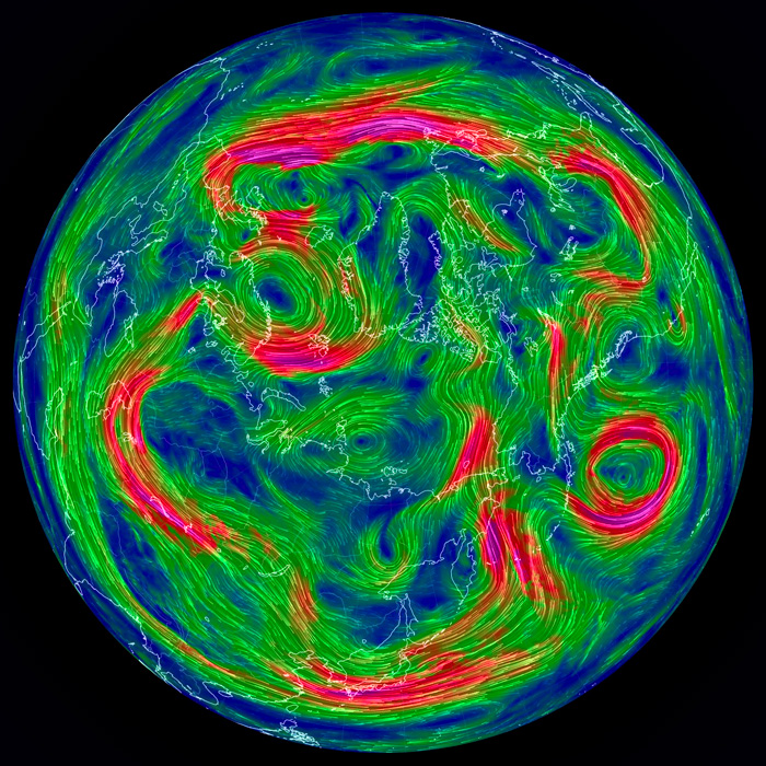 右列の天気図は,earth.nullschool.net から。 |