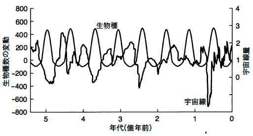 生物種数の周期的な変動と宇宙線変動の相関