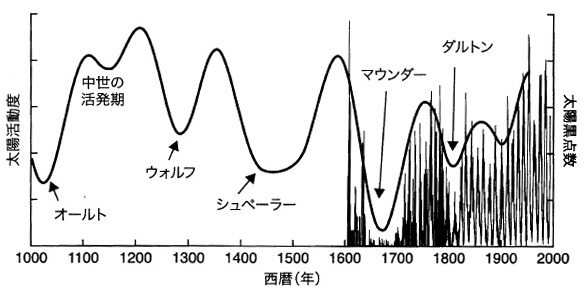 炭素14 から復元された過去1000年間の太陽活動の変動