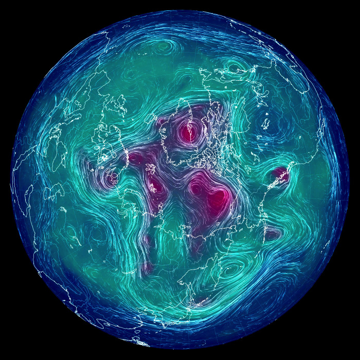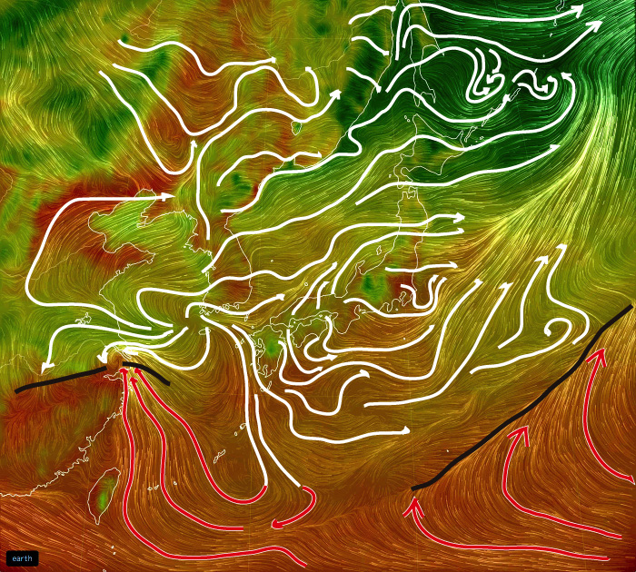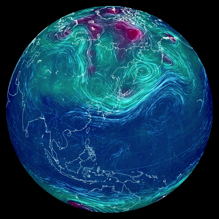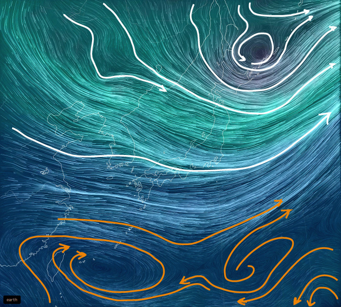 その高度別天気は,相互フィードバックの関係にある。 高層の天気は地上の天気にフィードバックし,地上の天気は高層の天気にフィードバックする。 こうして,たとえ関心があるのは地上の天気だとしても,地上の天気を観るだけでは天気はわからない。 というわけで,高度別の天気図をいろいろ備えることになる。 即ち,高度ごとの天気を,高度別の気象データに表す。 そして高度別気象データを,高度別の天気図として可視化する。 高度別の天気図は,高度が低いほど複雑になる。 理由は: 高度別の天気図は,つぎのようなものになる。 なお,風の流れが見やすいように,特徴的な流線を強調して表す。 |