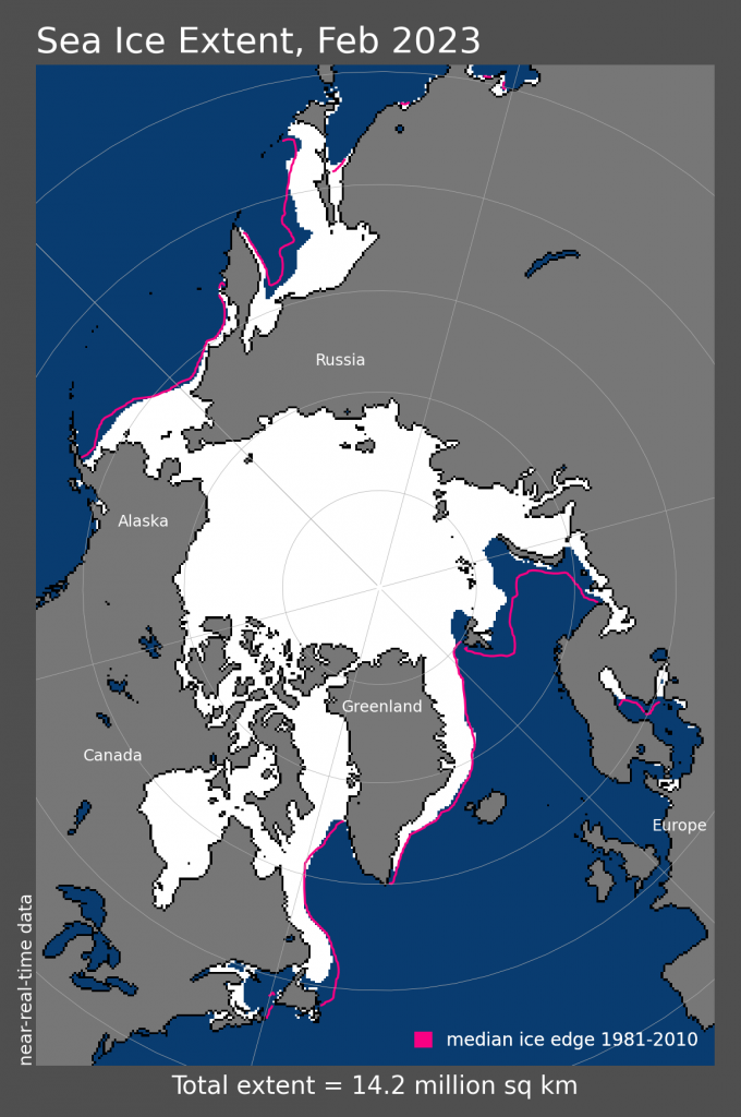 北極海域でこれに相当するところは,氷域が海域と接するところである。