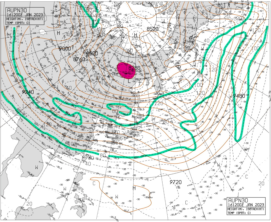 | 緑線:80kt 等速線