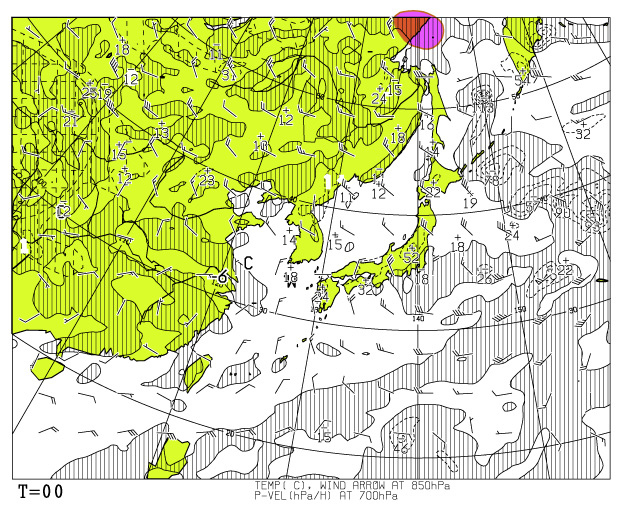 ○ 850hPa これは上昇流が無くなったのではなく,小さいいくつもの上昇流が合わさった状態になっているということである。 それは無数の支流に分かれていく。 |