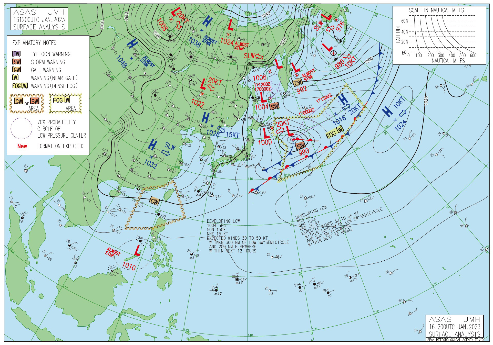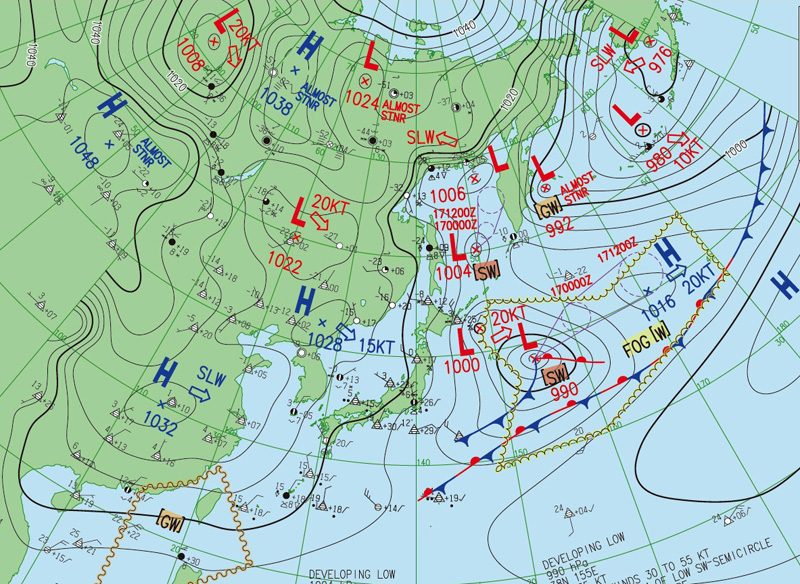 以上の3つの天気図から,つぎの図が導かれる: |