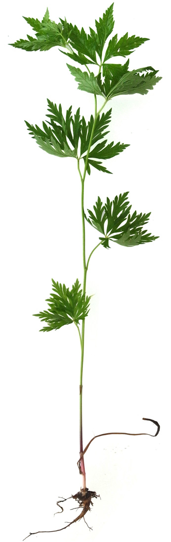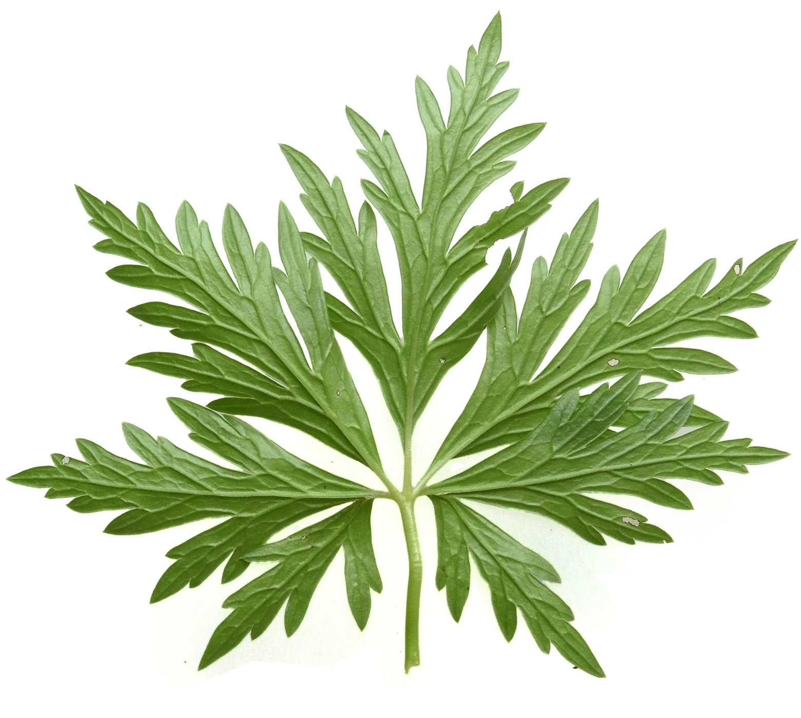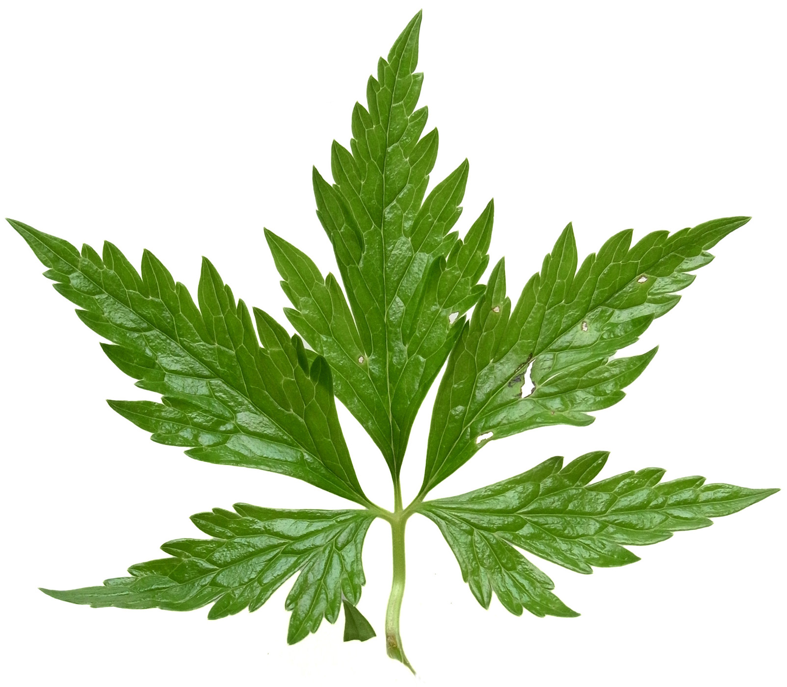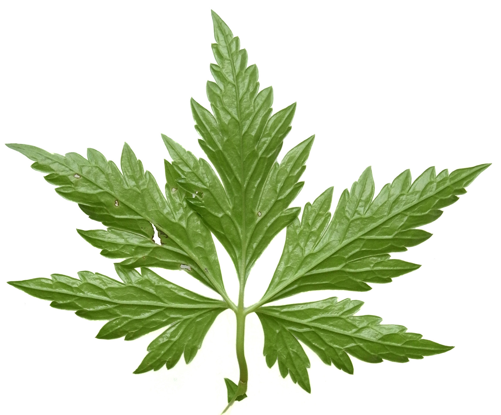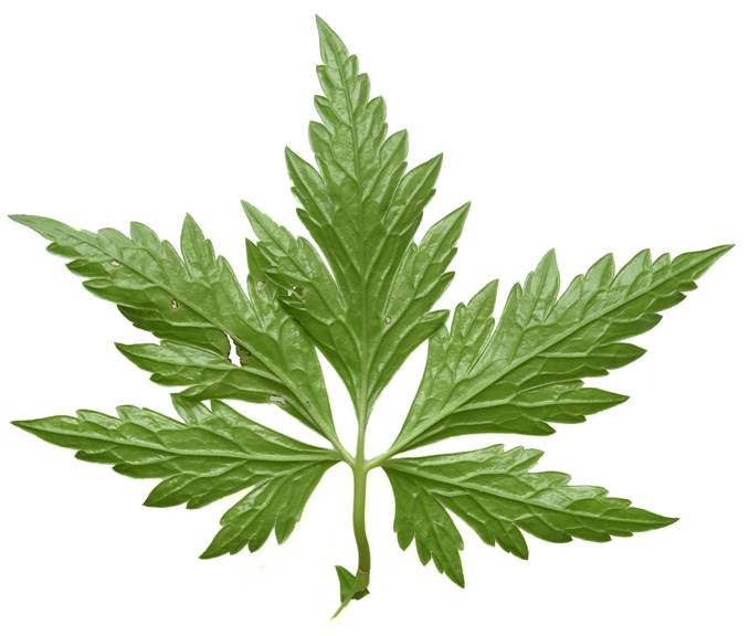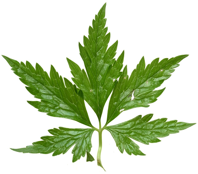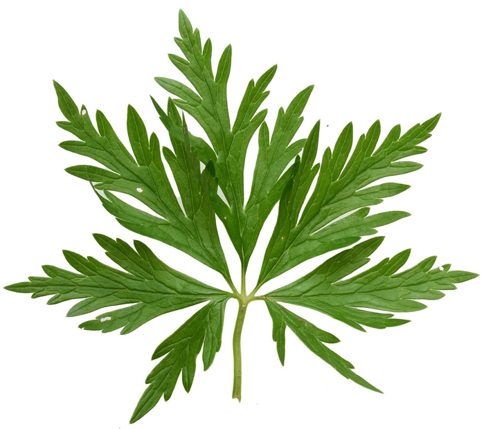 葉 :「3全裂し、裂片はさらに切れ込む。全体のシルエットは5角形。