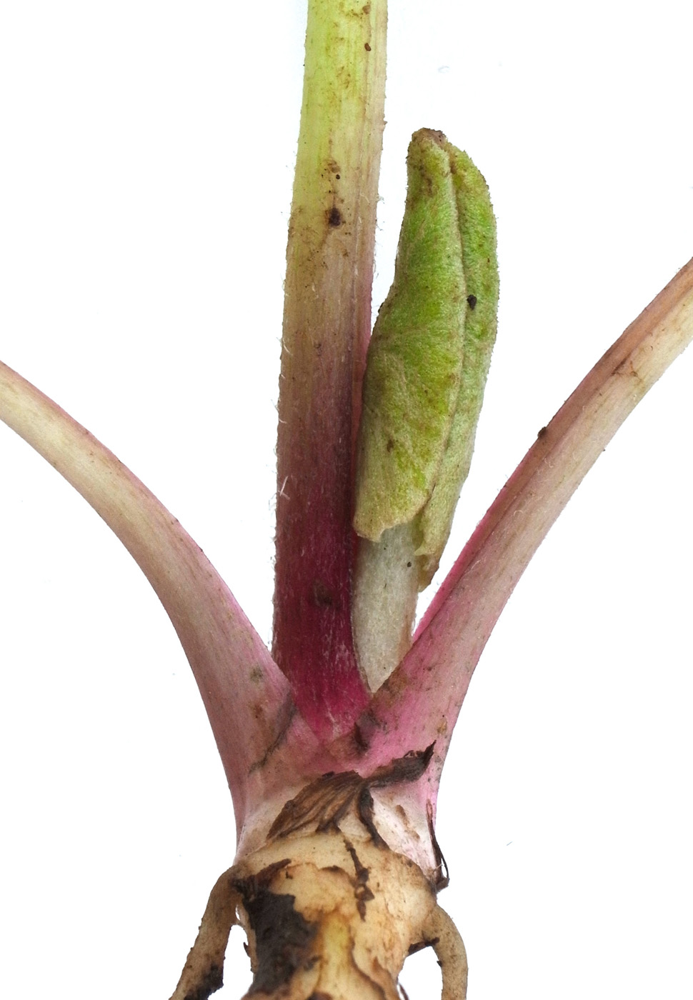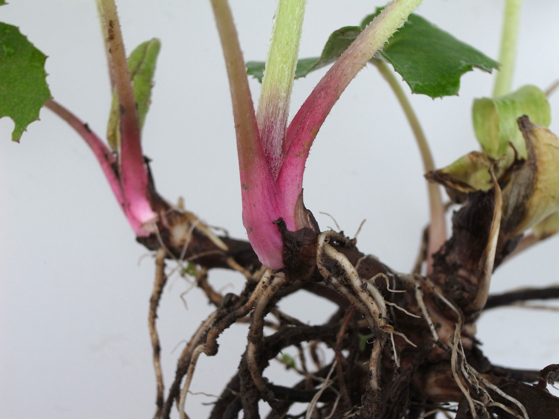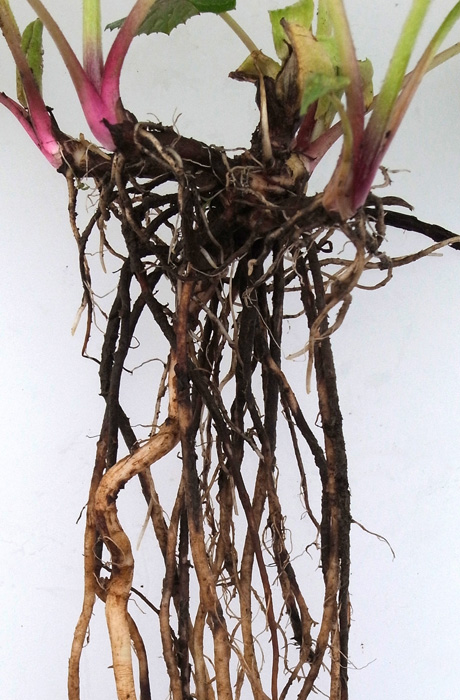 上方から見た地下茎の分かれ (見やすさのため根をカット):