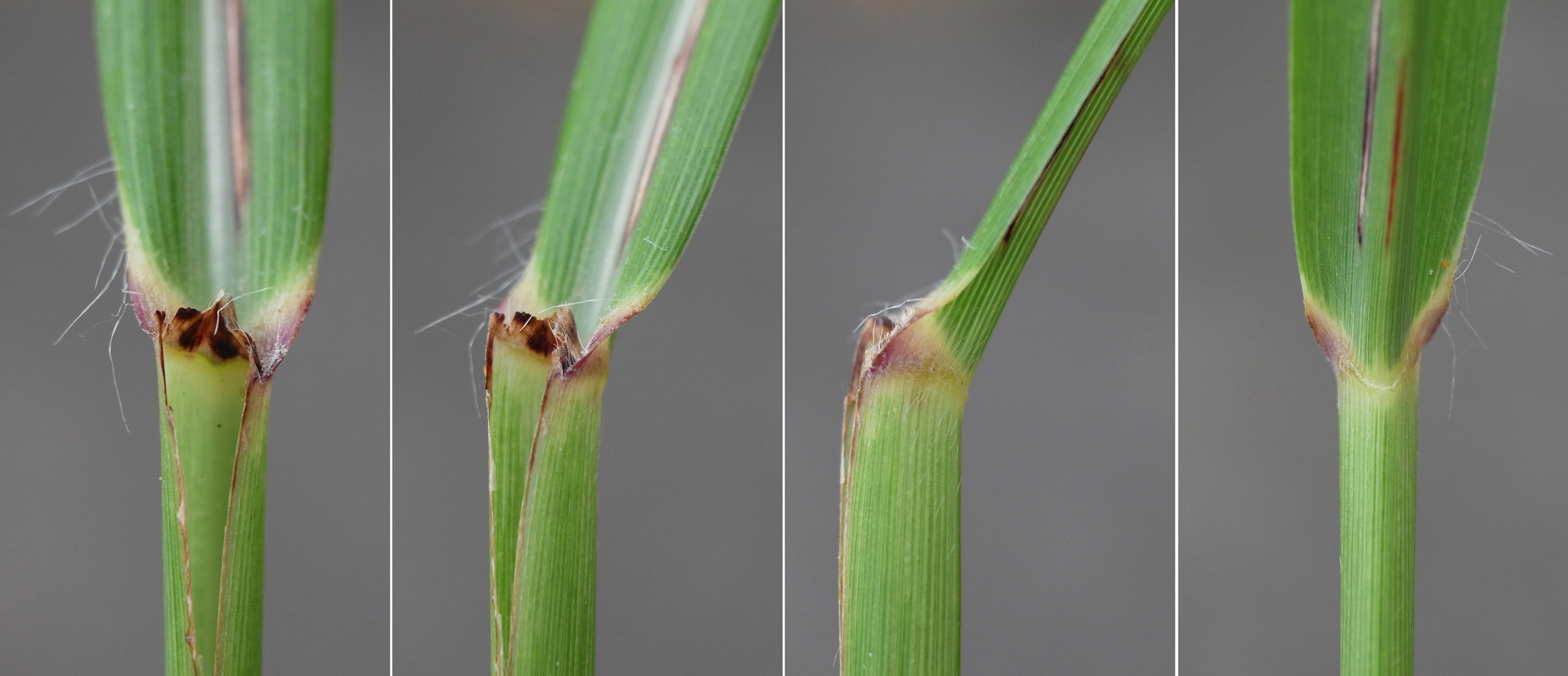 (右画像は,基毛を開いて小穂本体を現したところ)