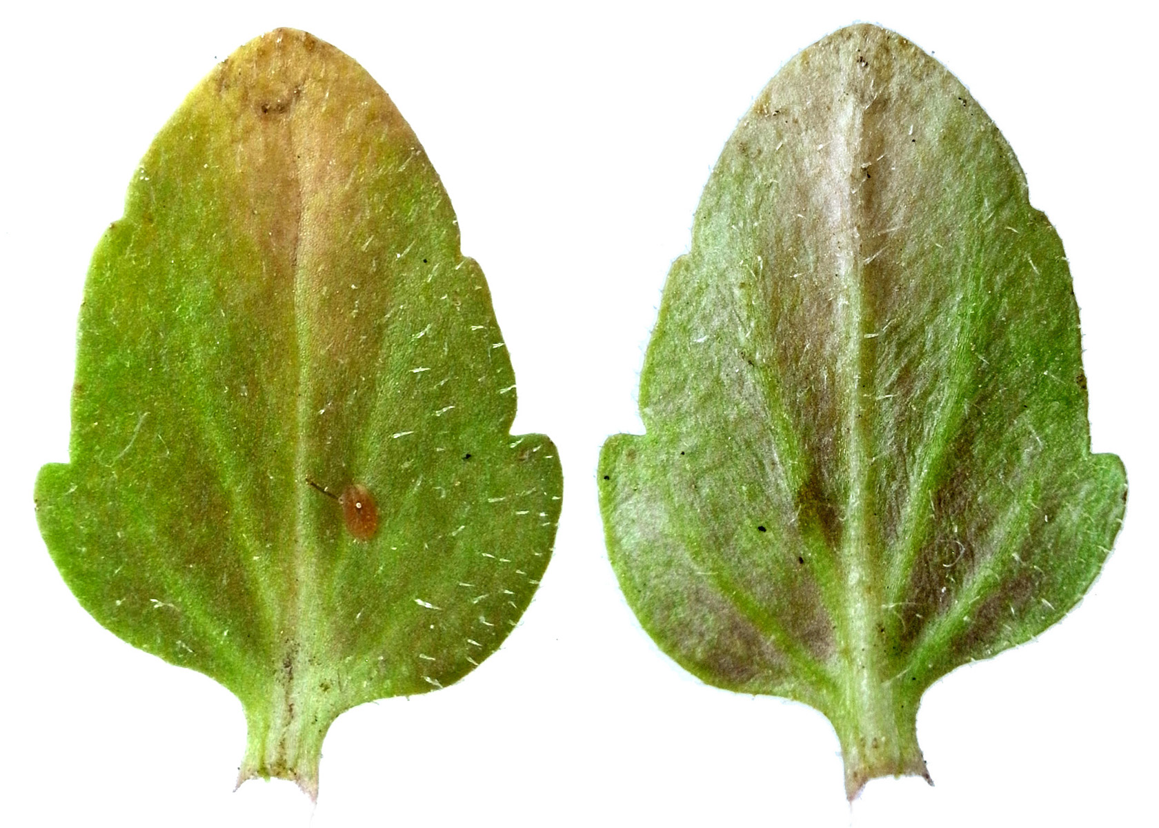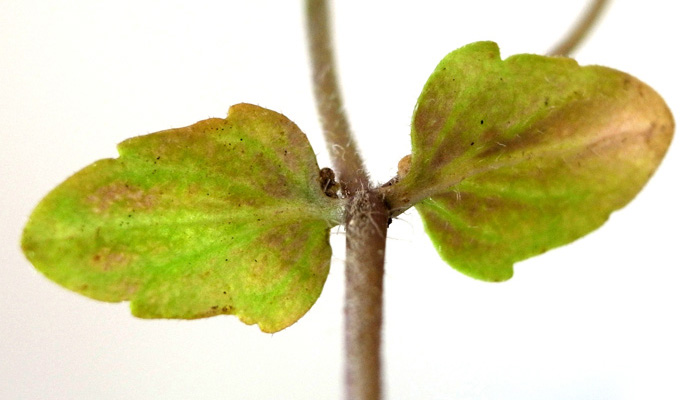 下方から葉の裏面を見る